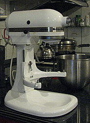 2.依序加入麵粉,鹽,進攪拌機,先用慢速攪拌均勻,再用中速攪打10分鐘左右.